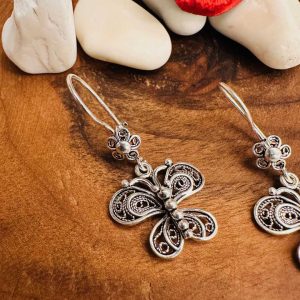 - Kelebek Tasarımlı Gümüş Telkari Bayan Küpesi modelimiz kişiye özel yapılır.