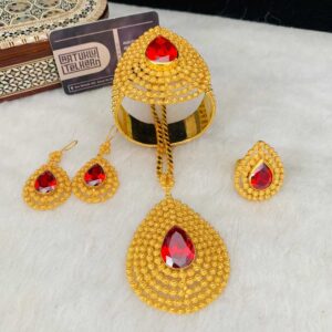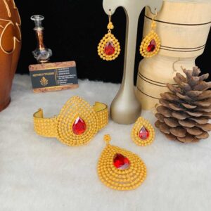 Kırmızı Taşlı Altın Kaplama Gümüş Kişniş Set