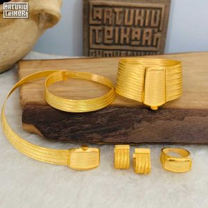 • 13 sıra bileklik, 5 sıra kolye hasır küpe ve yüzükten oluşmaktadır.