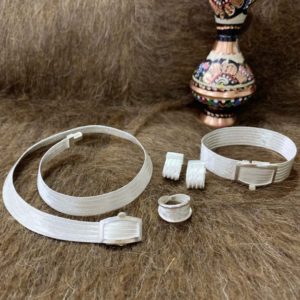 - 7 sıra bileklik, 5 sıra kolye, 5 sıra hasır küpe ve yüzükten oluşmaktadır.
