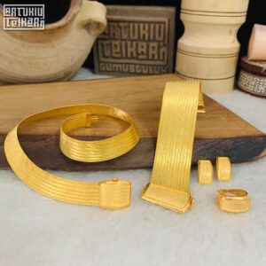 - 13 sıra bileklik, 7 sıra kolye, küpe ve yüzükten oluşmaktadır.