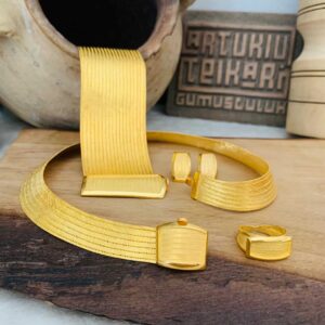 Artuklu Telkari, tarihi gümüş işleme sanatını, günümüz modern takı işlemeciliğiyle birleştirerek, tamamen müşterisine özel tasarımlar üretmektedir. Artuklu Telkari de, güvenli ve kolay alışveriş imkanı ile gümüş işleme ve altın kaplama gümüş çeşitleri bulunmaktadır. İncelediğiniz, Klasik Trabzon Hasır Takı Seti tamamen el işçiliği ile size özel üretilecektir.