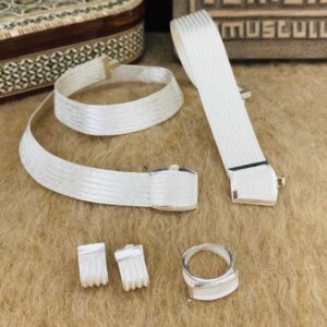 - 9 sıra bileklik, 7 sıra kolye, 5 hasır küpe ve yüzükten oluşmaktadır.