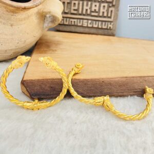 Artuklu Telkari, tarihi gümüş işleme sanatını, günümüz modern takı işlemeciliğiyle birleştirerek, tamamen müşterisine özel tasarımlar üretmektedir. Artuklu Telkari de, güvenli ve kolay alışveriş imkanı ile gümüş işleme ve altın kaplama gümüş çeşitleri bulunmaktadır. İncelediğiniz, Koç Başlı Altın Kaplama Gümüş Bayan Bileziği tamamen el işçiliği ile size özel üretilecektir.