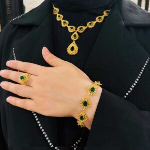 - Kök Zümrüt Taşlı Telkari Gümüş Bayan Takı Seti modelimiz kişiye özel yapılır.