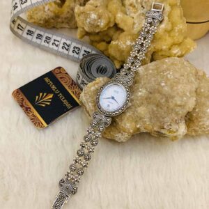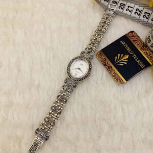 Artuklu Telkari, tarihi gümüş işleme sanatını, günümüz modern takı işlemeciliğiyle birleştirerek, tamamen müşterisine özel tasarımlar üretmektedir. Artuklu Telkari de, güvenli ve kolay alışveriş imkanı ile gümüş işleme ve altın kaplama gümüş çeşitleri bulunmaktadır. İncelediğiniz, Markazit Gümüş Bayan Saat Modeli bileğinize özel imal edilecektir.