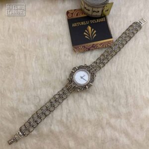 Artuklu Telkari, tarihi gümüş işleme sanatını, günümüz modern takı işlemeciliğiyle birleştirerek, tamamen müşterisine özel tasarımlar üretmektedir. Artuklu Telkari de, güvenli ve kolay alışveriş imkanı ile gümüş işleme ve altın kaplama gümüş çeşitleri bulunmaktadır. İncelediğiniz, Markazit Taşlı Gümüş Bayan Kol Saati bileğinize özel imal edilecektir.