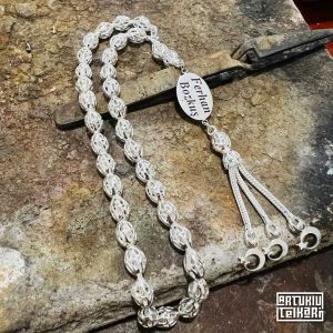 Artuklu Telkari, tarihi gümüş işleme sanatını, günümüz modern takı işlemeciliğiyle birleştirerek, tamamen müşterisine özel tasarımlar üretmektedir. Artuklu Telkari de, güvenli ve kolay alışveriş imkanı ile gümüş işleme ve altın kaplama gümüş çeşitleri bulunmaktadır. İncelediğiniz, Mhp Amblemli Telkari Gümüş Tesbih tamamen el işçiliği ile size özel üretilecektir.