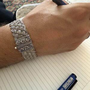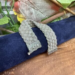 Artuklu Telkari, tarihi gümüş işleme sanatını, günümüz modern takı işlemeciliğiyle birleştirerek, tamamen müşterisine özel tasarımlar üretmektedir. Artuklu Telkari de, güvenli ve kolay alışveriş imkanı ile gümüş işleme ve altın kaplama gümüş çeşitleri bulunmaktadır. İncelediğiniz, Midyat Hasırı El İşi Gümüş Erkek Bilekliği tamamen el işçiliği ile size özel üretilecektir.