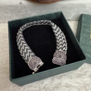 Artuklu Telkari, tarihi gümüş işleme sanatını, günümüz modern takı işlemeciliğiyle birleştirerek, tamamen müşterisine özel tasarımlar üretmektedir. Artuklu Telkari de, güvenli ve kolay alışveriş imkanı ile gümüş işleme ve altın kaplama gümüş çeşitleri bulunmaktadır. İncelediğiniz, Midyat Hasırı El Yapımı Modern Gümüş Bileklik tamamen el işçiliği ile size özel üretilecektir.