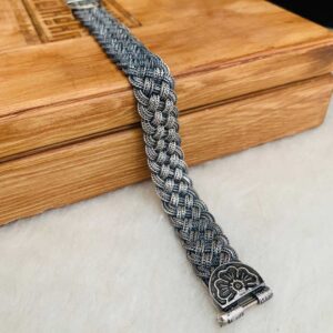 Artuklu Telkari, tarihi gümüş işleme sanatını, günümüz modern takı işlemeciliğiyle birleştirerek, tamamen müşterisine özel tasarımlar üretmektedir. Artuklu Telkari de, güvenli ve kolay alışveriş imkanı ile gümüş işleme ve altın kaplama gümüş çeşitleri bulunmaktadır. İncelediğiniz, Midyat Hasırı Gümüş Erkek Bileklik tamamen el işçiliği ile size özel üretilecektir.