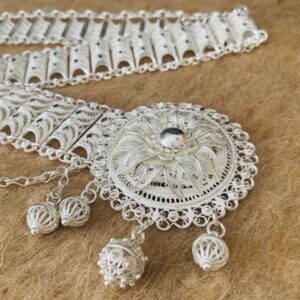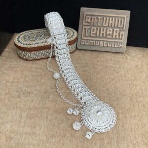Artuklu Telkari, tarihi gümüş işleme sanatını, günümüz modern takı işlemeciliğiyle birleştirerek, tamamen müşterisine özel tasarımlar üretmektedir. Artuklu Telkari de, güvenli ve kolay alışveriş imkanı ile gümüş işleme ve altın kaplama gümüş çeşitleri bulunmaktadır. İncelediğiniz, Midyat Telkari Gümüş Kemer tamamen el işçiliği ile size özel üretilecektir.