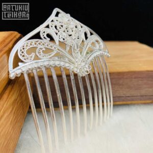Artuklu Telkari, tarihi gümüş işleme sanatını, günümüz modern takı işlemeciliğiyle birleştirerek, tamamen müşterisine özel tasarımlar üretmektedir. Artuklu Telkari de, güvenli ve kolay alışveriş imkanı ile gümüş işleme ve altın kaplama gümüş çeşitleri bulunmaktadır. İncelediğiniz, Midyat Telkari Gümüş Saç Tokası tamamen el işçiliği ile size özel üretilecektir.