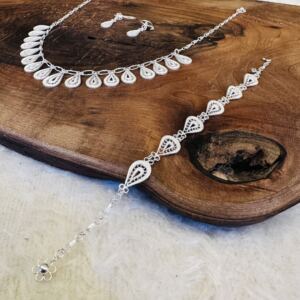 - Takı setimiz gerdanlık, bileklik ve küpeden oluşmaktadır.