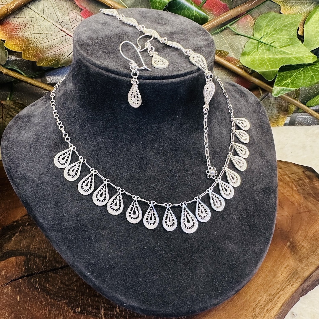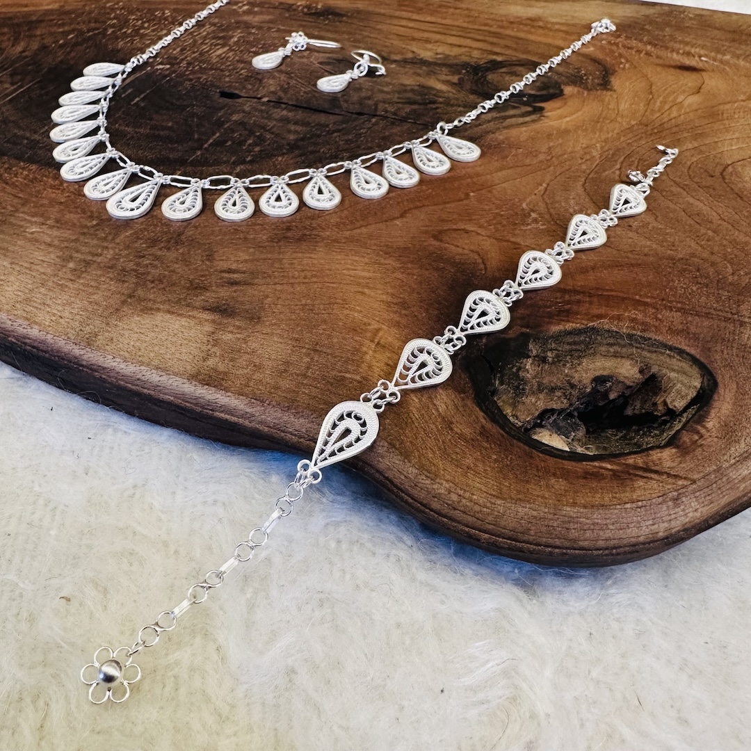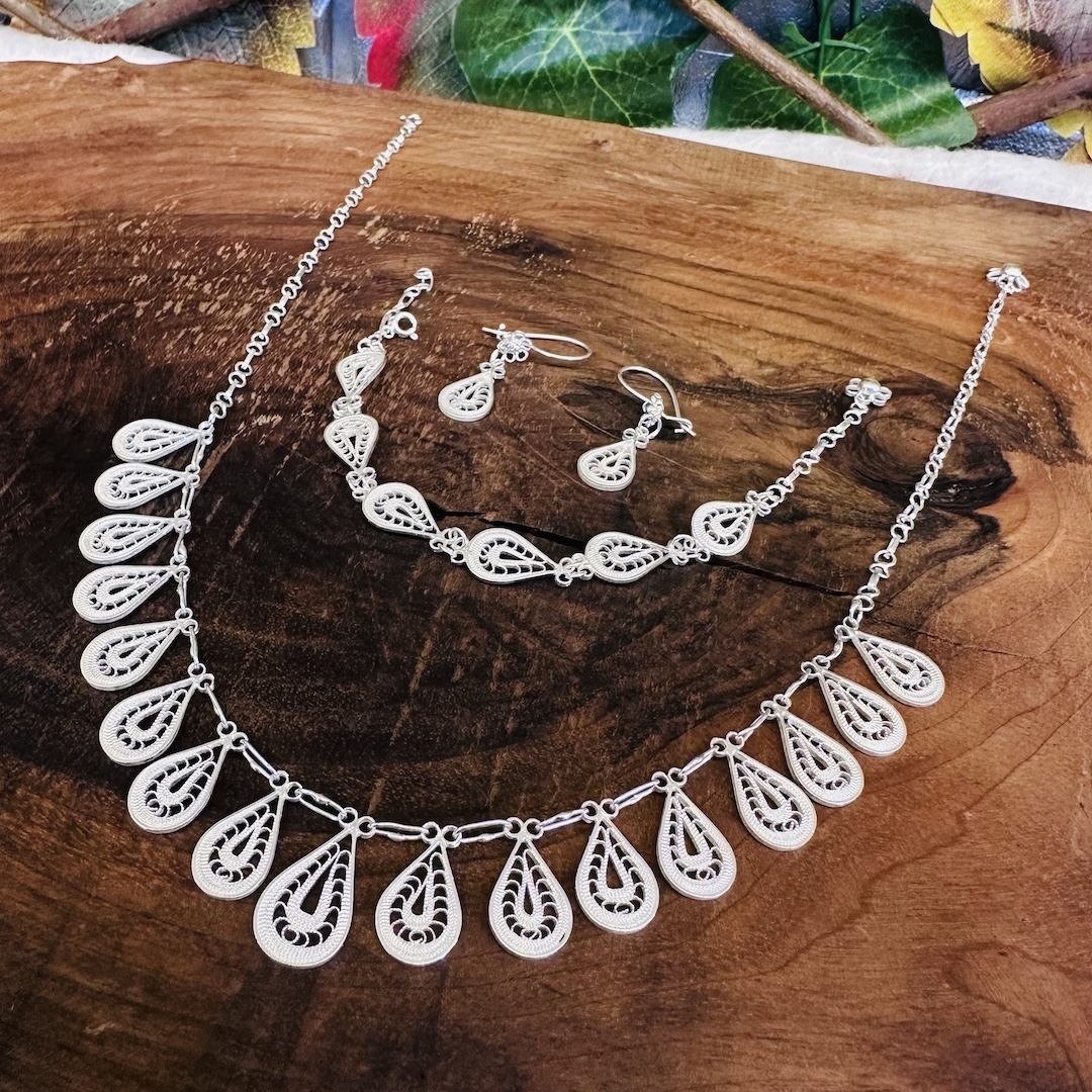 - Midyat Telkari İşlemeli Gümüş Damla Takı Seti modelimiz kişiye özel yapılır.