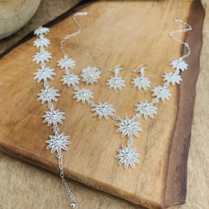 - Takı setimiz gerdanlık, bileklik, yüzük ve küpeden oluşmaktadır.