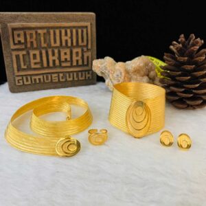 Artuklu Telkari, tarihi gümüş işleme sanatını, günümüz modern takı işlemeciliğiyle birleştirerek, tamamen müşterisine özel tasarımlar üretmektedir. Artuklu Telkari de, güvenli ve kolay alışveriş imkanı ile gümüş işleme ve altın kaplama gümüş çeşitleri bulunmaktadır. İncelediğiniz, Olimpiyat Başlıklı Trabzon Hasırı Bayan Seti tamamen el işçiliği ile size özel üretilecektir.