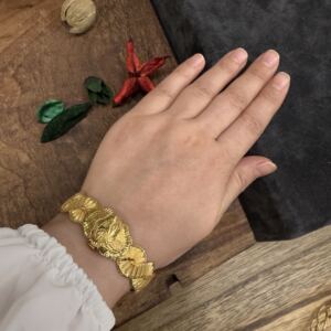 Artuklu Telkari, tarihi gümüş işleme sanatını, günümüz modern takı işlemeciliğiyle birleştirerek, tamamen müşterisine özel tasarımlar üretmektedir. Artuklu Telkari de, güvenli ve kolay alışveriş imkanı ile gümüş işleme ve altın kaplama gümüş çeşitleri bulunmaktadır. İncelediğiniz, Örgülü Altın Kaplama Gümüş Es Model Bayan Bileziği tamamen el işçiliği ile size özel üretilecektir.