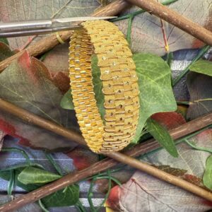 Artuklu Telkari, tarihi gümüş işleme sanatını, günümüz modern takı işlemeciliğiyle birleştirerek, tamamen müşterisine özel tasarımlar üretmektedir. Artuklu Telkari de, güvenli ve kolay alışveriş imkanı ile gümüş işleme ve altın kaplama gümüş çeşitleri bulunmaktadır. İncelediğiniz, Örgülü El İşi Altın Kaplama Gümüş Bilezik tamamen el işçiliği ile size özel üretilecektir.