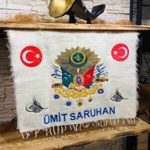 - Osmanlı Sancaklı Tiftik Dokuma Duvar Kilimi modelimiz kişiye özel yapılır.