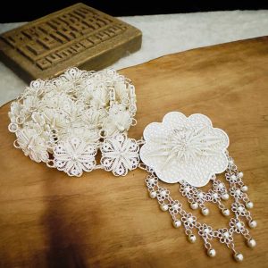 Artuklu Telkari, tarihi gümüş işleme sanatını, günümüz modern takı işlemeciliğiyle birleştirerek, tamamen müşterisine özel tasarımlar üretmektedir. Artuklu Telkari de, güvenli ve kolay alışveriş imkanı ile gümüş işleme ve altın kaplama gümüş çeşitleri bulunmaktadır. İncelediğiniz, Papatya Telkari Gümüş Püsküllü Bayan Kemeri tamamen el işçiliği ile size özel üretilecektir.
