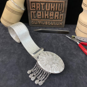 Artuklu Telkari, tarihi gümüş işleme sanatını, günümüz modern takı işlemeciliğiyle birleştirerek, tamamen müşterisine özel tasarımlar üretmektedir. Artuklu Telkari de, güvenli ve kolay alışveriş imkanı ile gümüş işleme ve altın kaplama gümüş çeşitleri bulunmaktadır. İncelediğiniz, Papatya Tokalı Trabzon Hasırı Kemer tamamen el işçiliği ile size özel üretilecektir.