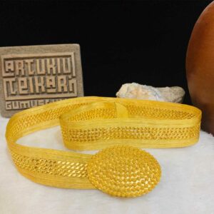 Artuklu Telkari, tarihi gümüş işleme sanatını, günümüz modern takı işlemeciliğiyle birleştirerek, tamamen müşterisine özel tasarımlar üretmektedir. Artuklu Telkari de, güvenli ve kolay alışveriş imkanı ile gümüş işleme ve altın kaplama gümüş çeşitleri bulunmaktadır. İncelediğiniz, Pullu Altın Kaplama Gümüş Bayan Kemeri tamamen el işçiliği ile size özel üretilecektir.