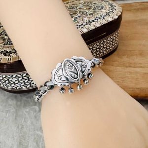 Artuklu Telkari, tarihi gümüş işleme sanatını, günümüz modern takı işlemeciliğiyle birleştirerek, tamamen müşterisine özel tasarımlar üretmektedir. Artuklu Telkari de, güvenli ve kolay alışveriş imkanı ile gümüş işleme ve altın kaplama gümüş çeşitleri bulunmaktadır. İncelediğiniz, Püsküllü Gümüş Erzurum Burması Yüzük Bilezik Modeli tamamen el işçiliği ile size özel üretilecektir.