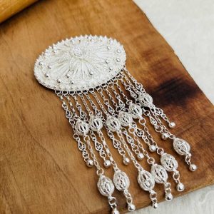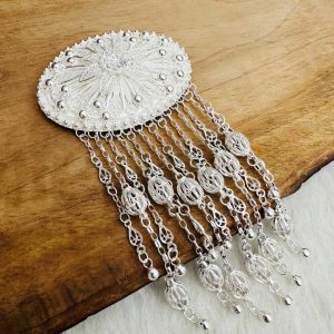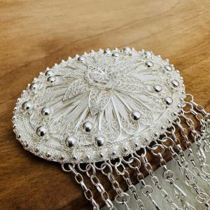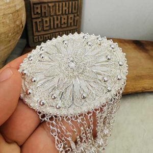 Artuklu Telkari, tarihi gümüş işleme sanatını, günümüz modern takı işlemeciliğiyle birleştirerek, tamamen müşterisine özel tasarımlar üretmektedir. Artuklu Telkari de, güvenli ve kolay alışveriş imkanı ile gümüş işleme ve altın kaplama gümüş çeşitleri bulunmaktadır. İncelediğiniz, Püsküllü Telkari Gümüş Saç Tokası tamamen el işçiliği ile size özel üretilecektir.