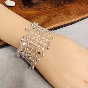 Artuklu Telkari, tarihi gümüş işleme sanatını, günümüz modern takı işlemeciliğiyle birleştirerek, tamamen müşterisine özel tasarımlar üretmektedir. Artuklu Telkari de, güvenli ve kolay alışveriş imkanı ile gümüş işleme ve altın kaplama gümüş çeşitleri bulunmaktadır. İncelediğiniz, Püsküllü Telkari İşlemeli Gümüş Bayan Bilekliği tamamen el işçiliği ile size özel üretilecektir.