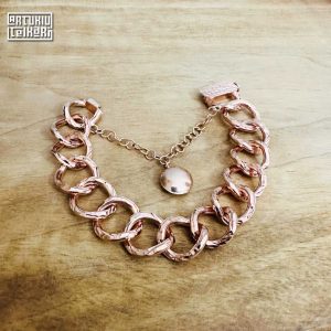 Artuklu Telkari, tarihi gümüş işleme sanatını, günümüz modern takı işlemeciliğiyle birleştirerek, tamamen müşterisine özel tasarımlar üretmektedir. Artuklu Telkari de, güvenli ve kolay alışveriş imkanı ile gümüş işleme ve altın kaplama gümüş çeşitleri bulunmaktadır. İncelediğiniz, Rose Kaplama Gümüş Uzay Yolu Bileklik tamamen el işçiliği ile size özel üretilecektir.