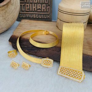 Altın Kaplama Gümüş Trabzon Hasırı Set