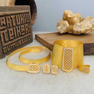 Taşlı Altın Kaplama Trabzon Seti