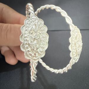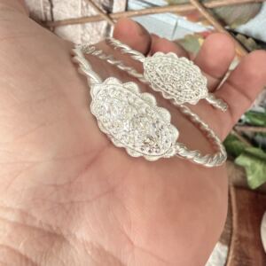 Artuklu Telkari, tarihi gümüş işleme sanatını, günümüz modern takı işlemeciliğiyle birleştirerek, tamamen müşterisine özel tasarımlar üretmektedir. Artuklu Telkari de, güvenli ve kolay alışveriş imkanı ile gümüş işleme ve altın kaplama gümüş çeşitleri bulunmaktadır. İncelediğiniz, Telkari Başlıklı Gümüş Erzurum Burma Bilezik tamamen el işçiliği ile size özel üretilecektir.