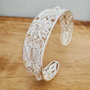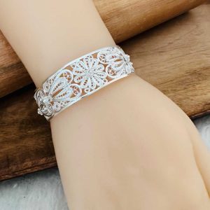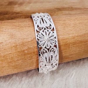 Artuklu Telkari, tarihi gümüş işleme sanatını, günümüz modern takı işlemeciliğiyle birleştirerek, tamamen müşterisine özel tasarımlar üretmektedir. Artuklu Telkari de, güvenli ve kolay alışveriş imkanı ile gümüş işleme ve altın kaplama gümüş çeşitleri bulunmaktadır. İncelediğiniz, Telkari Bilezik tamamen el işçiliği ile size özel üretilecektir.
