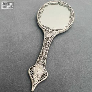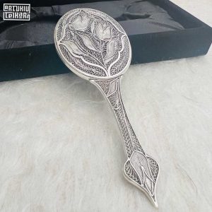 Artuklu Telkari, tarihi gümüş işleme sanatını, günümüz modern takı işlemeciliğiyle birleştirerek, tamamen müşterisine özel tasarımlar üretmektedir. Artuklu Telkari de, güvenli ve kolay alışveriş imkanı ile gümüş işleme ve altın kaplama gümüş çeşitleri bulunmaktadır. İncelediğiniz, Telkari Gümüş Ayna tamamen el işçiliği ile size özel üretilecektir.