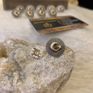 Artuklu Telkari, tarihi gümüş işleme sanatını, günümüz modern takı işlemeciliğiyle birleştirerek, tamamen müşterisine özel tasarımlar üretmektedir. Artuklu Telkari de, güvenli ve kolay alışveriş imkanı ile gümüş işleme ve altın kaplama gümüş çeşitleri bulunmaktadır. İncelediğiniz, Telkari Gümüş Ayyıldız Bay Bayan Yaka Rozeti tamamen el işçiliği ile size özel üretilecektir.