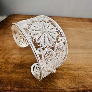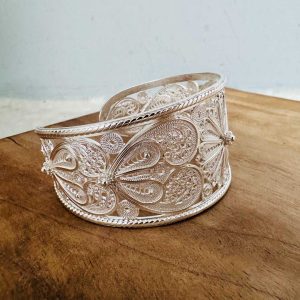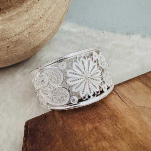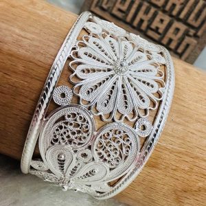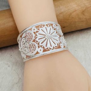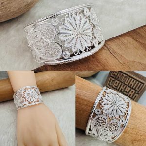 Artuklu Telkari, tarihi gümüş işleme sanatını, günümüz modern takı işlemeciliğiyle birleştirerek, tamamen müşterisine özel tasarımlar üretmektedir. Artuklu Telkari de, güvenli ve kolay alışveriş imkanı ile gümüş işleme ve altın kaplama gümüş çeşitleri bulunmaktadır. İncelediğiniz, Telkari Gümüş Bayan Bilezik tamamen el işçiliği ile size özel üretilecektir.