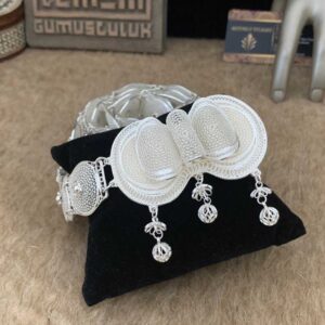 Artuklu Telkari’nin 925 ayar gümüşten ürettiği oksitli, gümüş ürünler, bu geleneksel sanatın modern tasarımlarla buluştuğu özel koleksiyonlardır. Oksitlenme işlemi, gümüşün yüzeyine antik bir görünüm vererek telkari işçiliğinin detaylarını daha belirgin hale getirir ve ürünlere otantik bir hava katar. Kolyelerden küpelere, yüzüklerden bilekliklere kadar geniş bir yelpazede sunulan bu el yapımı ürünler, hem günlük kullanımda hem de özel günlerde zarafeti ve özgünlüğü temsil eder. Artuklu Telkari, bu nadide sanatı koruyarak gelecek nesillere aktarmayı ve müşterilerine eşsiz, el emeği göz nuru eserler sunmayı amaç edinmiştir.