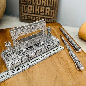 - Telkari Gümüş Çift Kalemli Masa İsimliği modelimiz kişiye özel yapılır.