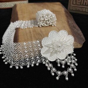 Artuklu Telkari, tarihi gümüş işleme sanatını, günümüz modern takı işlemeciliğiyle birleştirerek, tamamen müşterisine özel tasarımlar üretmektedir. Artuklu Telkari de, güvenli ve kolay alışveriş imkanı ile gümüş işleme ve altın kaplama gümüş çeşitleri bulunmaktadır. İncelediğiniz, Telkari Gümüş Gelin Kombin Takı Seti tamamen el işçiliği ile size özel üretilecektir.
