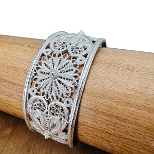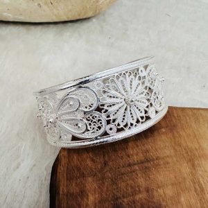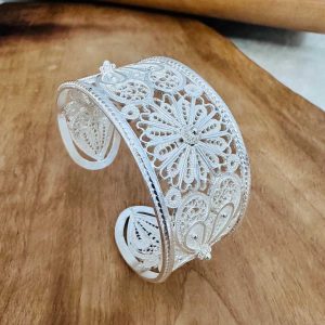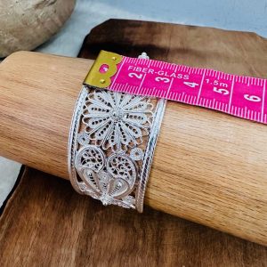 Artuklu Telkari, tarihi gümüş işleme sanatını, günümüz modern takı işlemeciliğiyle birleştirerek, tamamen müşterisine özel tasarımlar üretmektedir. Artuklu Telkari de, güvenli ve kolay alışveriş imkanı ile gümüş işleme ve altın kaplama gümüş çeşitleri bulunmaktadır. İncelediğiniz, Telkari Gümüş Bayan Bilezik tamamen el işçiliği ile size özel üretilecektir.