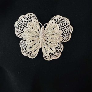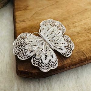Artuklu Telkari, tarihi gümüş işleme sanatını, günümüz modern takı işlemeciliğiyle birleştirerek, tamamen müşterisine özel tasarımlar üretmektedir. Artuklu Telkari de, güvenli ve kolay alışveriş imkanı ile gümüş işleme ve altın kaplama gümüş çeşitleri bulunmaktadır. İncelediğiniz, Telkari Gümüş Kelebek Broş tamamen el işçiliği ile size özel üretilecektir.