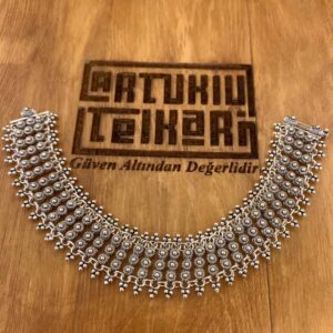 Artuklu Telkari, tarihi gümüş işleme sanatını, günümüz modern takı işlemeciliğiyle birleştirerek, tamamen müşterisine özel tasarımlar üretmektedir. Artuklu Telkari de, güvenli ve kolay alışveriş imkanı ile gümüş işleme ve altın kaplama gümüş çeşitleri bulunmaktadır. İncelediğiniz, Telkari Gümüş Kırkayak Bayan Takı Seti tamamen el işçiliği ile size özel üretilecektir.