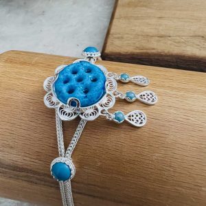 Artuklu Telkari, tarihi gümüş işleme sanatını, günümüz modern takı işlemeciliğiyle birleştirerek, tamamen müşterisine özel tasarımlar üretmektedir. Artuklu Telkari de, güvenli ve kolay alışveriş imkanı ile gümüş işleme ve altın kaplama gümüş çeşitleri bulunmaktadır. İncelediğiniz, Telkari Gümüş Süryani Nazarlıklı Bileklik tamamen el işçiliği ile size özel üretilecektir.