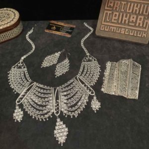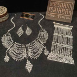 Artuklu Telkari, tarihi gümüş işleme sanatını, günümüz modern takı işlemeciliğiyle birleştirerek, tamamen müşterisine özel tasarımlar üretmektedir. Artuklu Telkari de, güvenli ve kolay alışveriş imkanı ile gümüş işleme ve altın kaplama gümüş çeşitleri bulunmaktadır. İncelediğiniz, Telkari Gümüş Urfa Akıtması Set tamamen el işçiliği ile size özel üretilecektir.