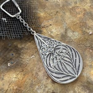 Artuklu Telkari, tarihi gümüş işleme sanatını, günümüz modern takı işlemeciliğiyle birleştirerek, tamamen müşterisine özel tasarımlar üretmektedir. Artuklu Telkari de, güvenli ve kolay alışveriş imkanı ile gümüş işleme ve altın kaplama gümüş çeşitleri bulunmaktadır. İncelediğiniz, Telkari işlemeli gümüş adalet amblemli isimli anahtarlık tamamen el işçiliği ile size özel üretilecektir.