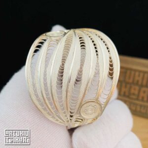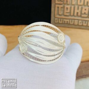 Artuklu Telkari, tarihi gümüş işleme sanatını, günümüz modern takı işlemeciliğiyle birleştirerek, tamamen müşterisine özel tasarımlar üretmektedir. Artuklu Telkari de, güvenli ve kolay alışveriş imkanı ile gümüş işleme ve altın kaplama gümüş çeşitleri bulunmaktadır. İncelediğiniz, Telkari İşlemeli Gümüş Bayan Bileziği tamamen el işçiliği ile size özel üretilecektir.