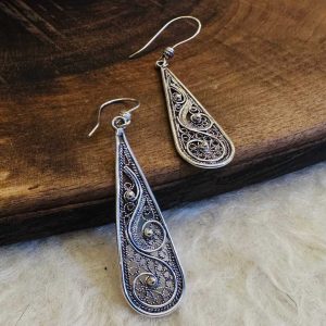 - Telkari İşlemeli Gümüş Damla Bayan Küpesi modelimiz kişiye özel yapılır.