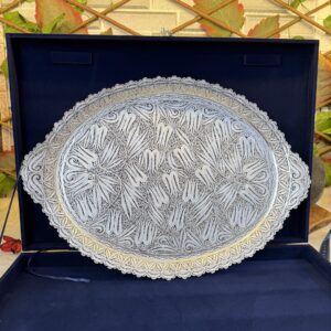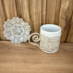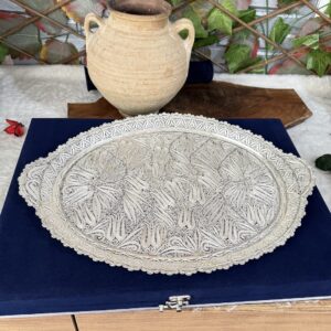 Artuklu Telkari, tarihi gümüş işleme sanatını, günümüz modern takı işlemeciliğiyle birleştirerek, tamamen müşterisine özel tasarımlar üretmektedir. Artuklu Telkari de, güvenli ve kolay alışveriş imkanı ile gümüş işleme ve altın kaplama gümüş çeşitleri bulunmaktadır. İncelediğiniz, Telkari İşlemeli Gümüş Kahve Fincan Tepsi Takımı tamamen el işçiliği ile size özel üretilecektir.